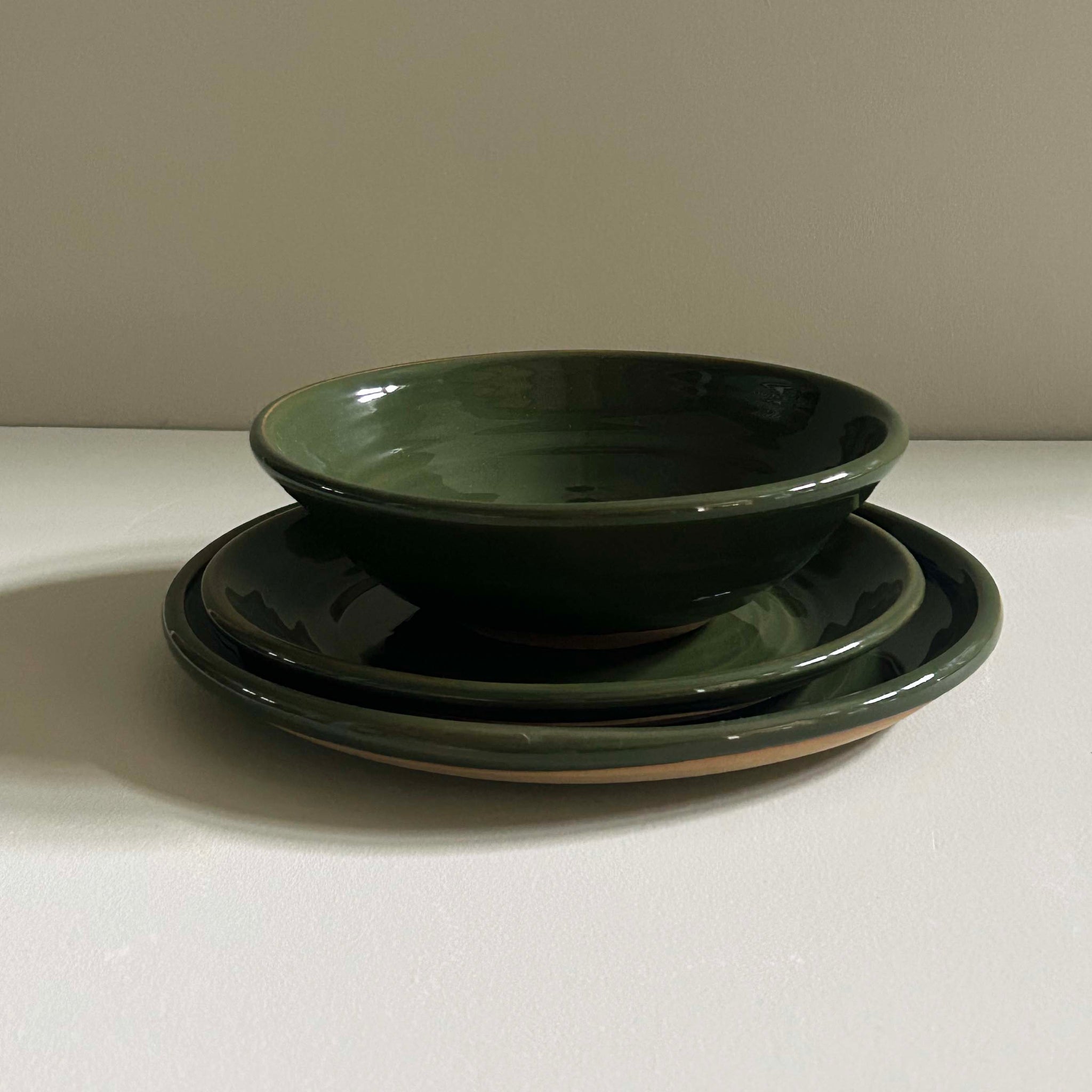Our wheel-thrown Dinner Set is available in all of our Modern range glazes, however there will be approximately 2 weeks lead-time for all colours apart from Milk.