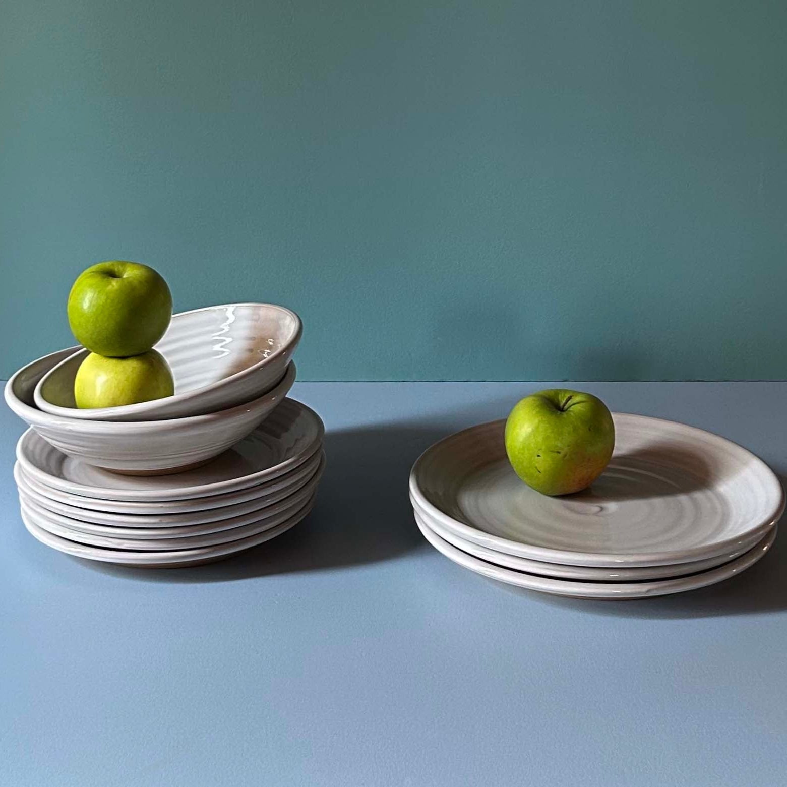 Please email us (info@tonyslypottery.com) if you would like your dinner set in any of our other Modern range colours and we will glaze to order. Allow 2 weeks lead time.