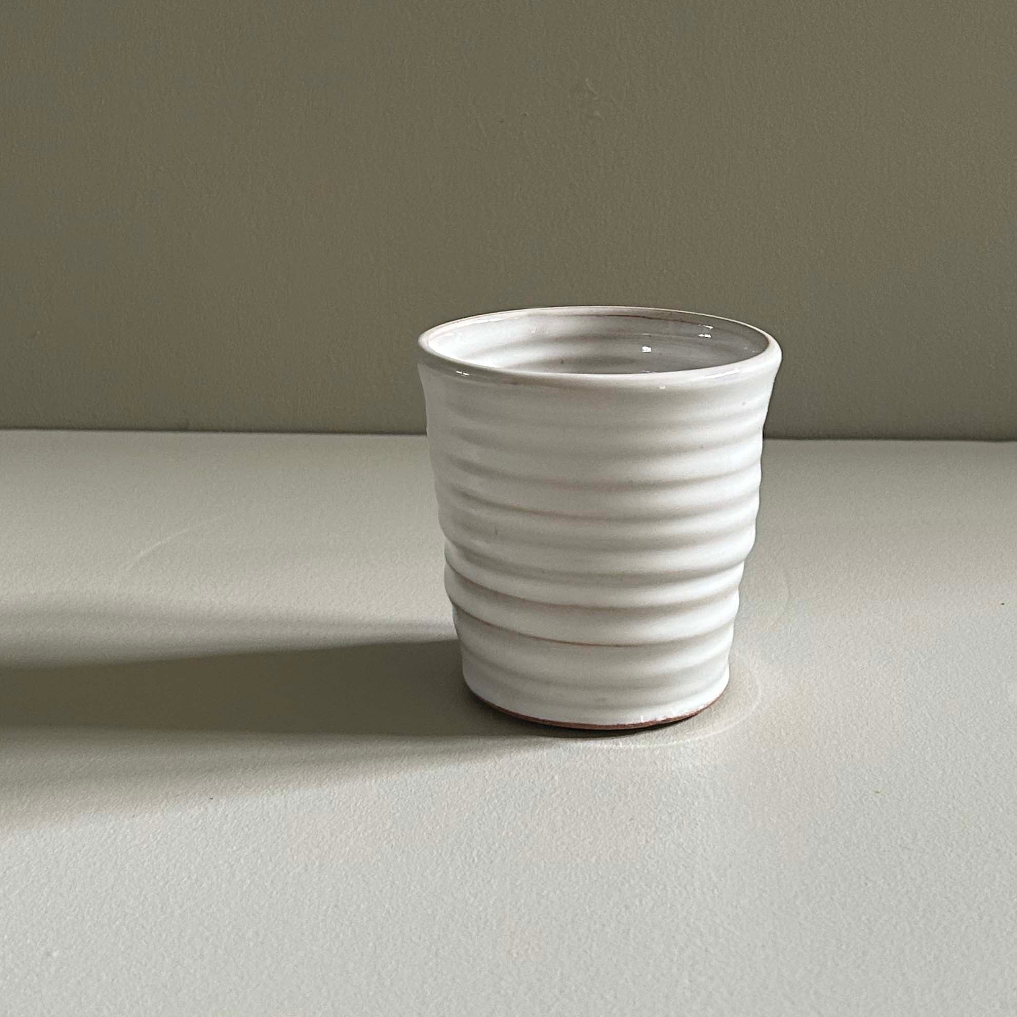 The tapered shape means these cups stack really well. Please note as each cup is handmade the dimensions can vary slightly from piece to piece.