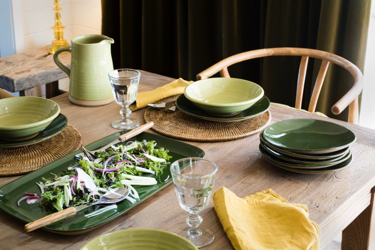 I like thinking that the pottery I make is classic and timeless, but I’m never quite sure I’ve pulled it off. So when a friend told me recently that when they first saw my Rustic pottery they couldn't tell if it was new or old, I took it as a great compliment. I’ve been making our green and mustard Rustic pieces for more than twenty years now and I still enjoy refining and revisiting some of my early designs.